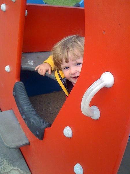 Tisdagseftermiddagar innebär två barn som ska skjutsas till två olika gymnastikhallar på olika tidpunkter. Inte så kul varken för mig eller tvååringen. Men idag hittade vi en lekpark utanför den ena gympahallen så där hängde vi en stund innan det var dags att rulla vidare i logistikschemat.