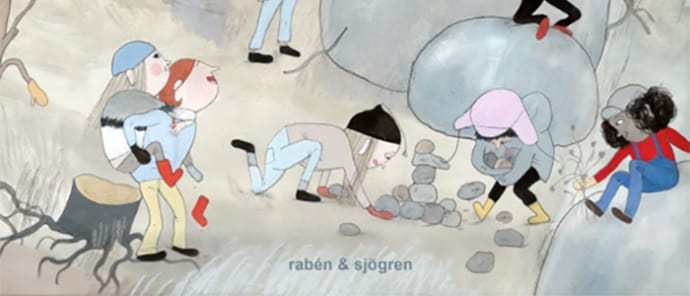 Bild ur Emma AdBåges bok "Gropen" som tilldelades Augustpriset 2018 för bästa barn- och ungdomsbok. Boken är Göteborgs Stads bokgåva till alla elever i förskoleklass.